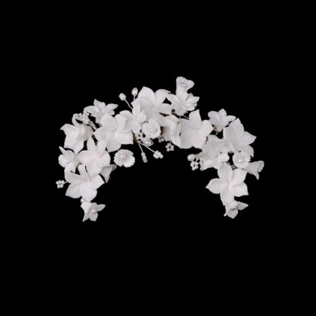 Clay Flower Blossom Leaf Shine Side Hairvine/Brooch – White Gold Rent from Rp1.890.000