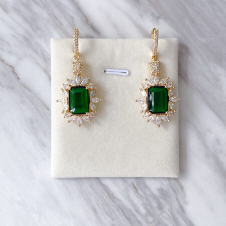 Drop Vintage Elongated Cushion Earrings – 18k Yellow Gold, Emerald Rent from Rp800.000