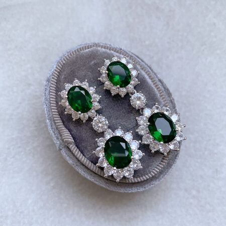 Drop Oval Radiance Earrings – Rhodium White Gold, Emerald Rent from Rp800.000