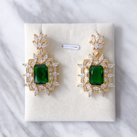Double Bezel Square Earrings – Rhodium White Gold, Emerald Rent from Rp550.000