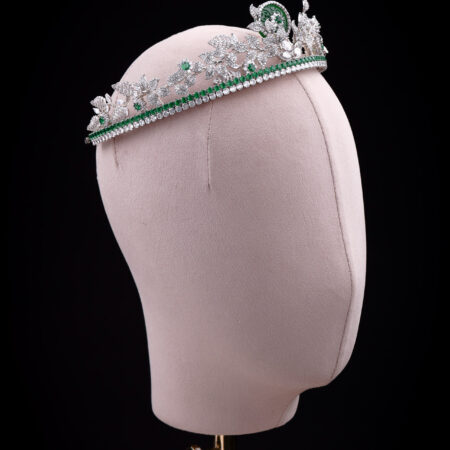 Jade Emerald Diamond Garden Crown – Rhodium White Gold, Emerald Rent from Rp3.500.000