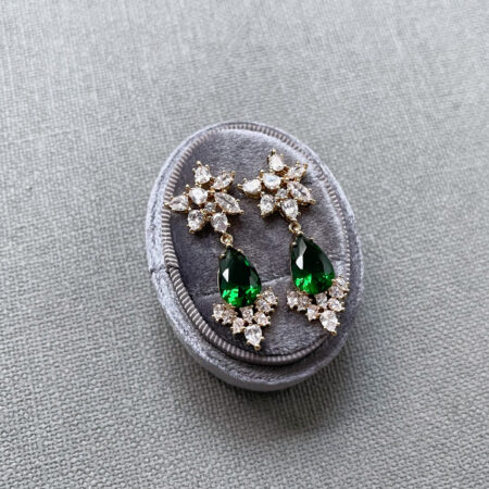Vintage Elongated Cushion Earrings – Rhodium White Gold, Emerald Rent from Rp650.000