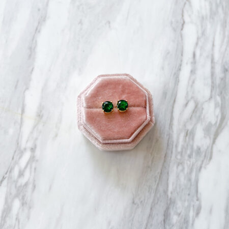 Round Paved Stud Earrings – 18k Yellow Gold, Emerald (Needle) Rent from Rp500.000