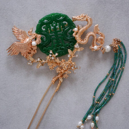 Crane and Dragon Jade Hairpin – Gold, Jade Rent from Rp1.390.000