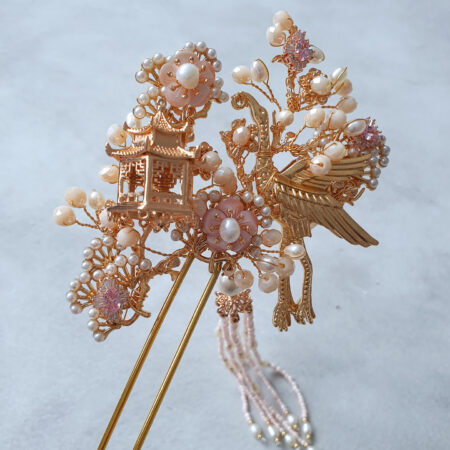 Flying Crane Garden Hairpin – Gold, Pink Diamond Rent from Rp1.190.000