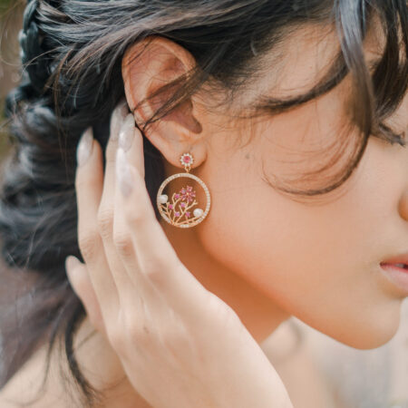 Pink Blooms Earrings – 18k Yellow Gold, Pink Diamond Rent from Rp850.000