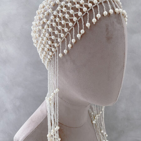 Woven Pearl Fringe Headpiece – White Silver Rent from Rp1.390.000
