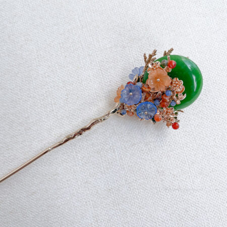 Round Jade Treasure Floral Hairpin – Gold, Jade Rent from Rp2.190.000