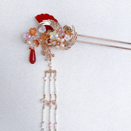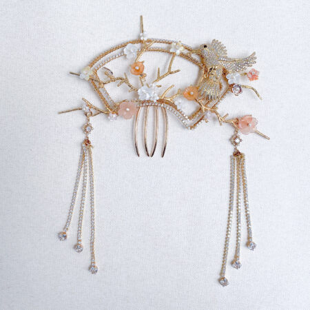 Fan-Shaped Ikebana Diamond Bird Haircomb – Gold, Coral Rent from Rp2.390.000