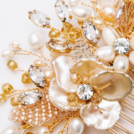 Shell Beaded Leaves Haircomb – Gold Rent from Rp800.000