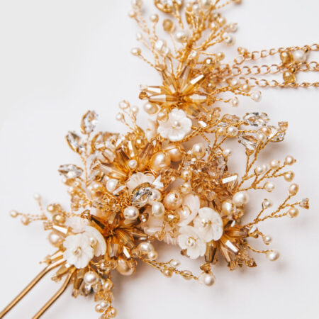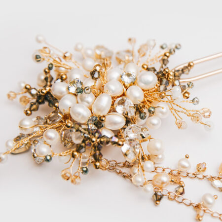 Pearl Beaded Leaves Haircomb – Gold Rent from Rp800.000