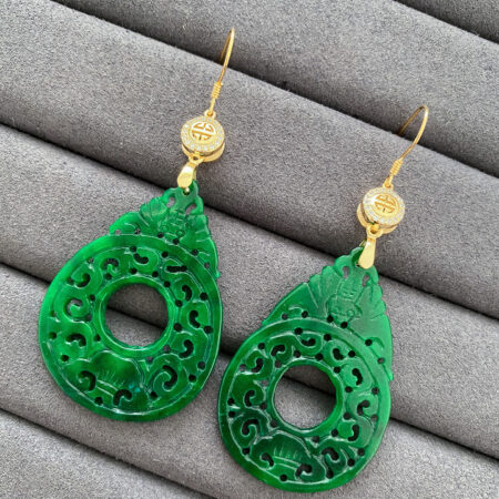 Double Happiness Carved Teardrop Hollow Jade Earrings – 18k Yellow Gold, Jade Rent from Rp1.400.000