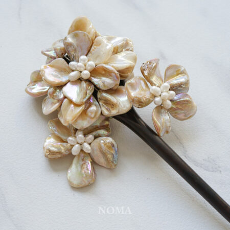 Triple Pearl Flowers Wooden Hairpin – Silver Rent from Rp1.090.000
