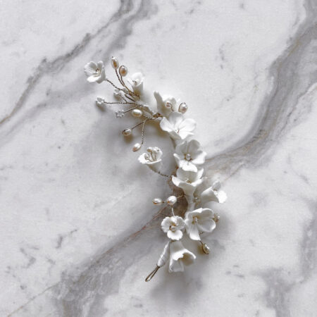 Clay Flower Blossom Side Hairvine – White Silver Rent from Rp900.000