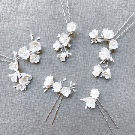 Clay Flower Blossom with Pistil Hairpin Set – White Silver (5 pcs) Rent from Rp1.190.000