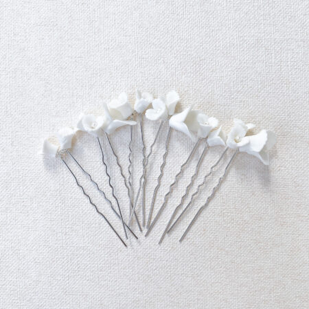 Clay Flower Simple Hairpin Set – White Silver (6 pcs) Rent from Rp900.000