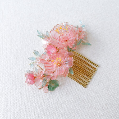 Scenery Blushing Blooms Haircomb – 18k Yellow Gold, Pink Rent from Rp3.000.000