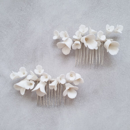 Clay Flower Simple Small Haircomb Set – White Silver (2 pcs) Rent from Rp900.000
