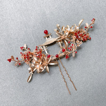 Crane Flowers Haircomb – Gold, Red Rent from Rp990.000