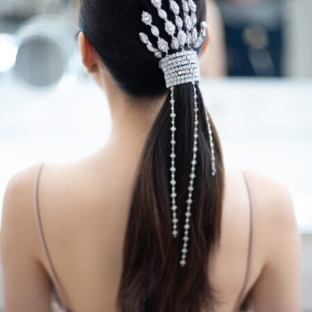 Oval Shine Ponytail Set with Chain – White Gold (8 pcs) Rent from Rp2.250.000