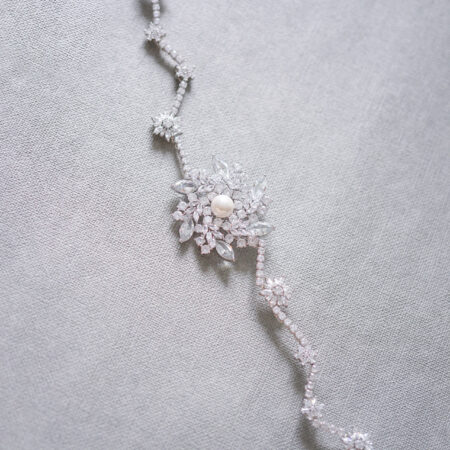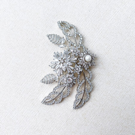 Clay Flower Jasmine Pearl Side Brooch/ Hairvine – White Silver Rent from Rp1.790.000