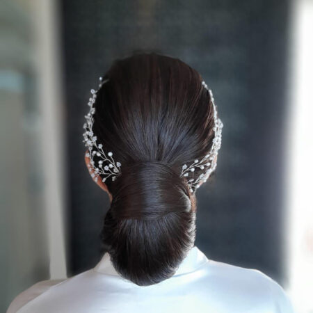 Extravagant Pearl Flower Side Haircomb Set – White Silver (2 pcs)