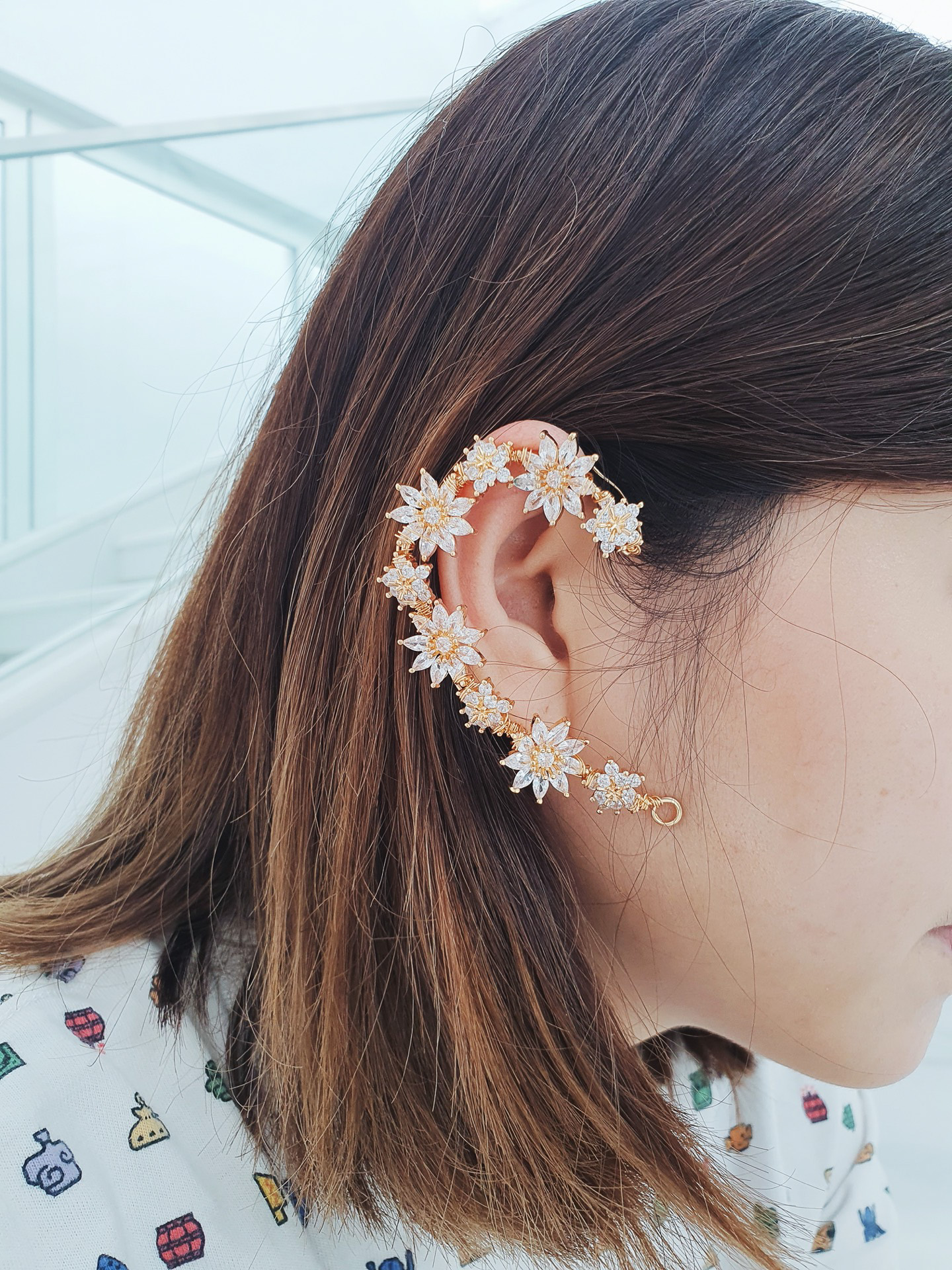 Bling Flower Earpiece – Gold (Right)
