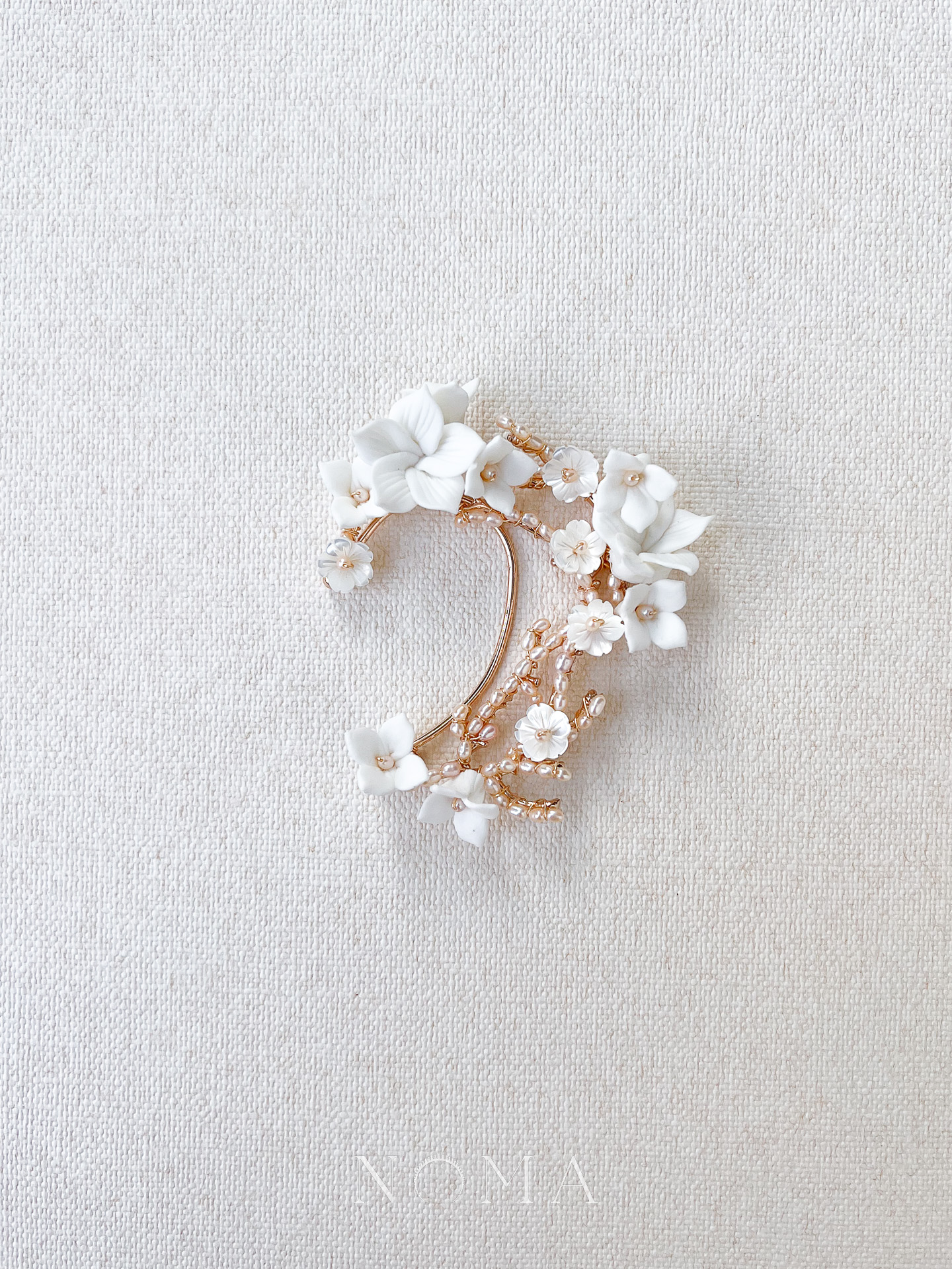 Clay Flower Pearl Branches Earpiece – Gold (Left)