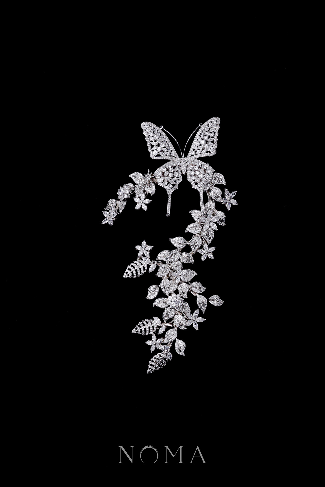 Butterfly in the Garden Earpiece – White Gold (Left)