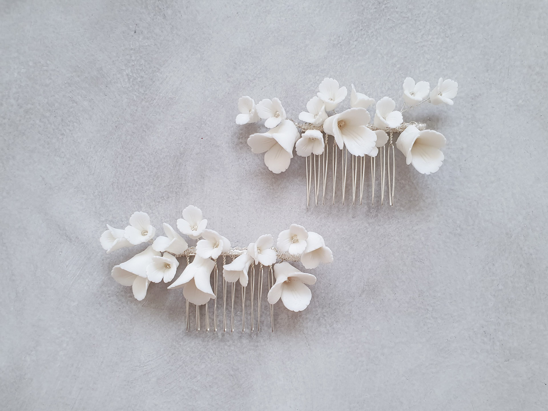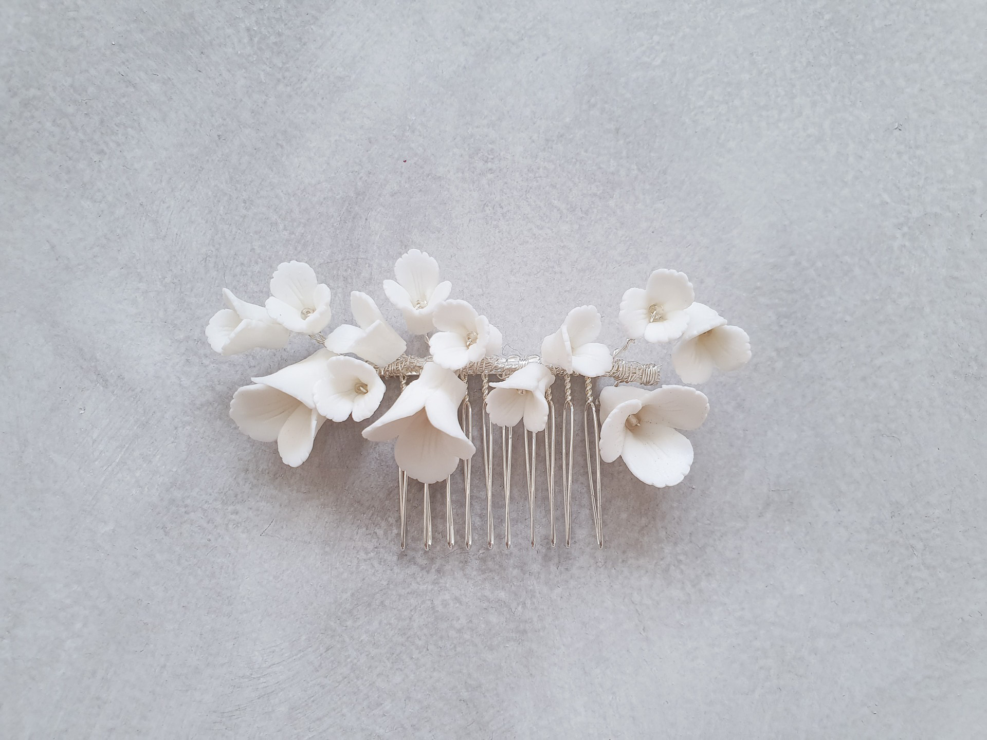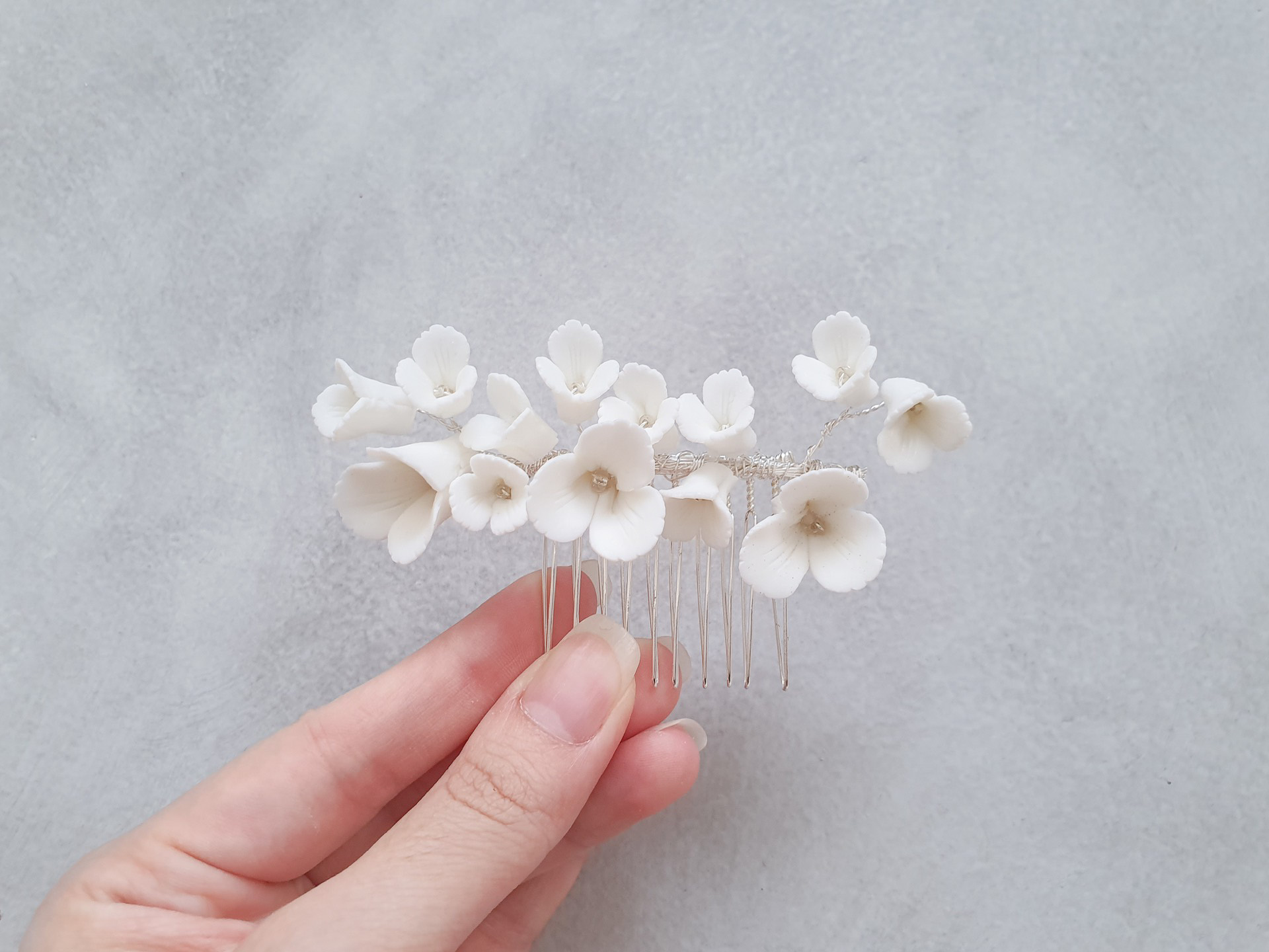 Clay Flower Simple Medium Haircomb – White Silver