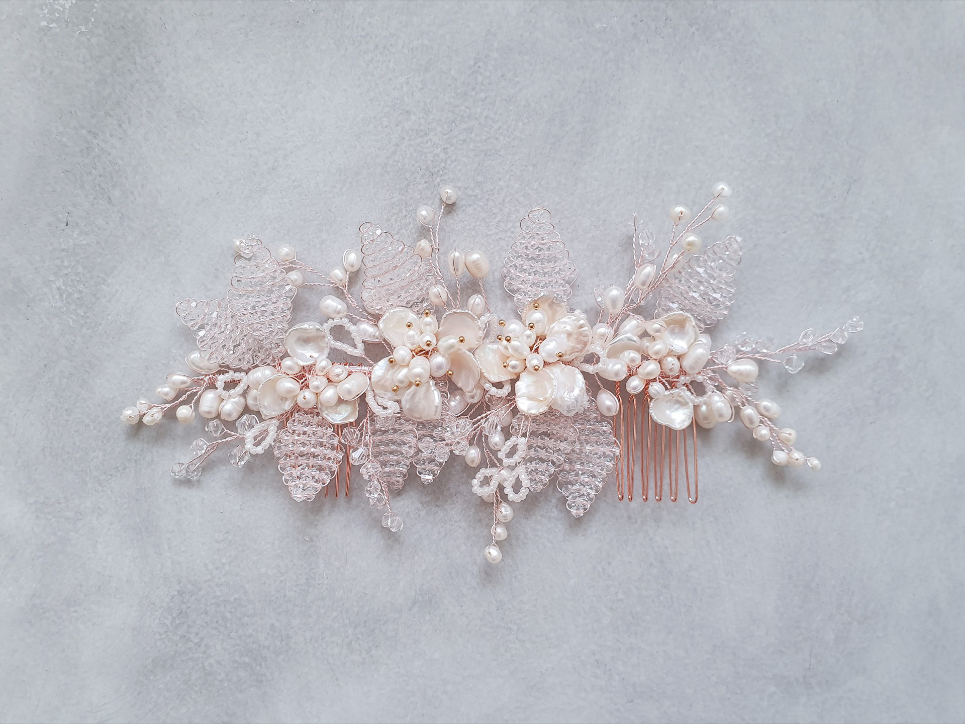 Extravagant Pearl Flower Haircomb Set – Rose Gold (3 pcs)