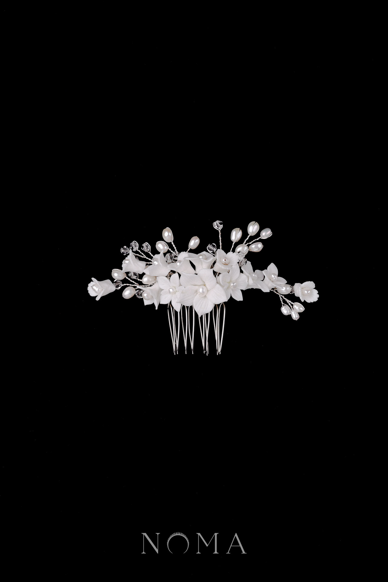 Clay Flower Lily Pearl Medium Haircomb – White Silver