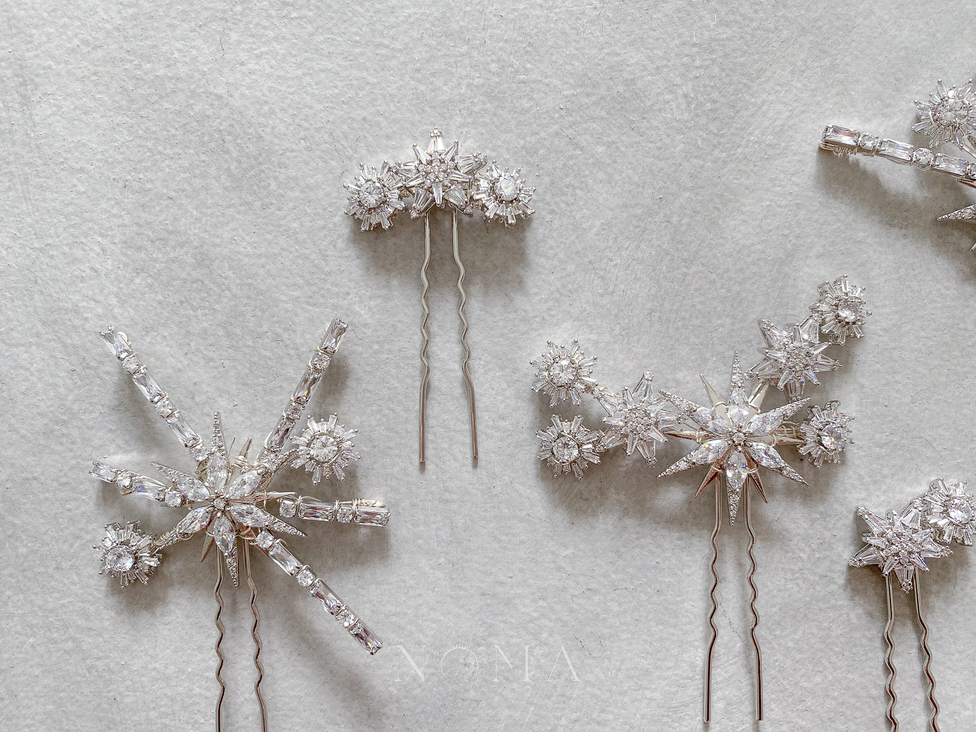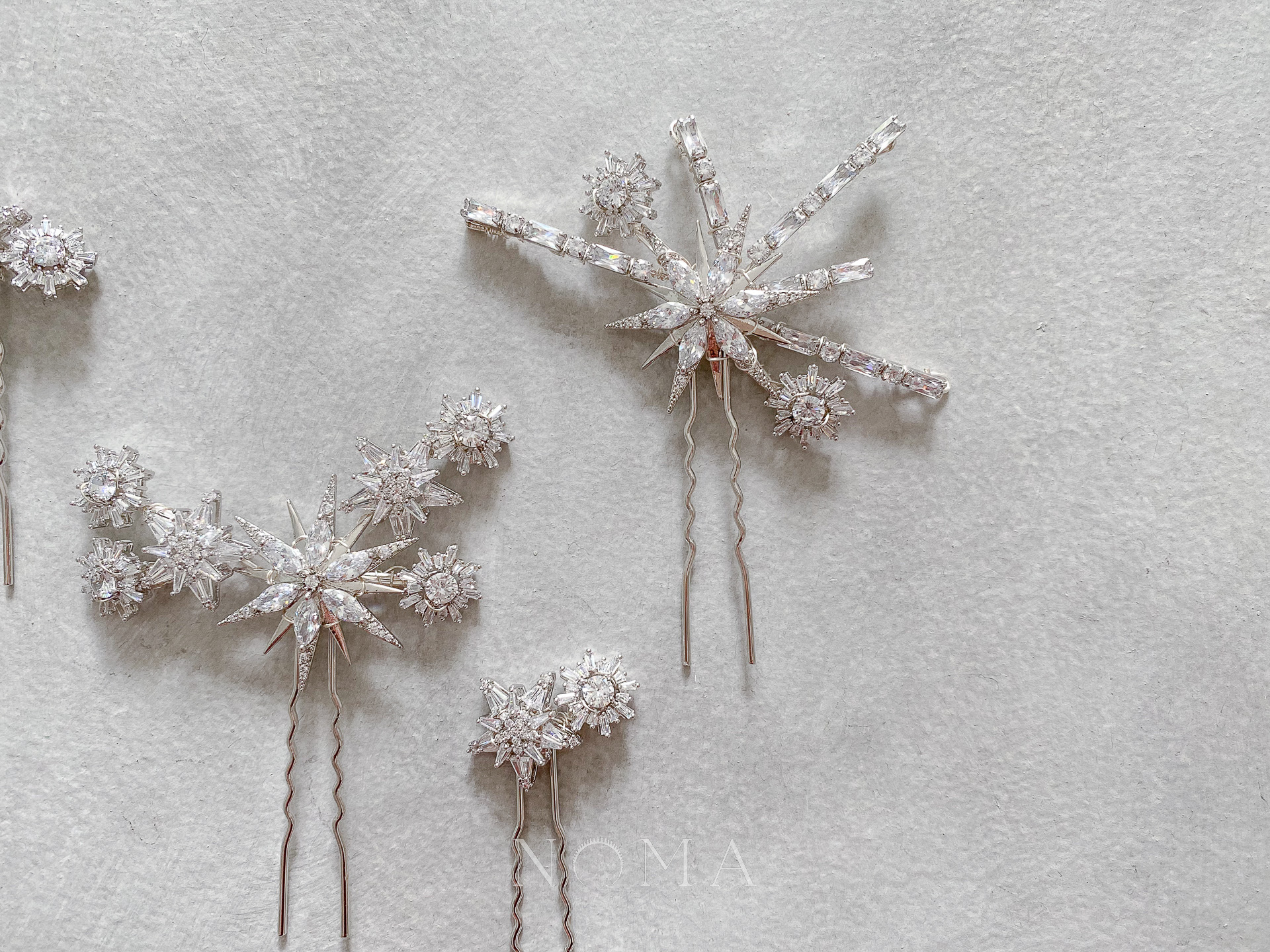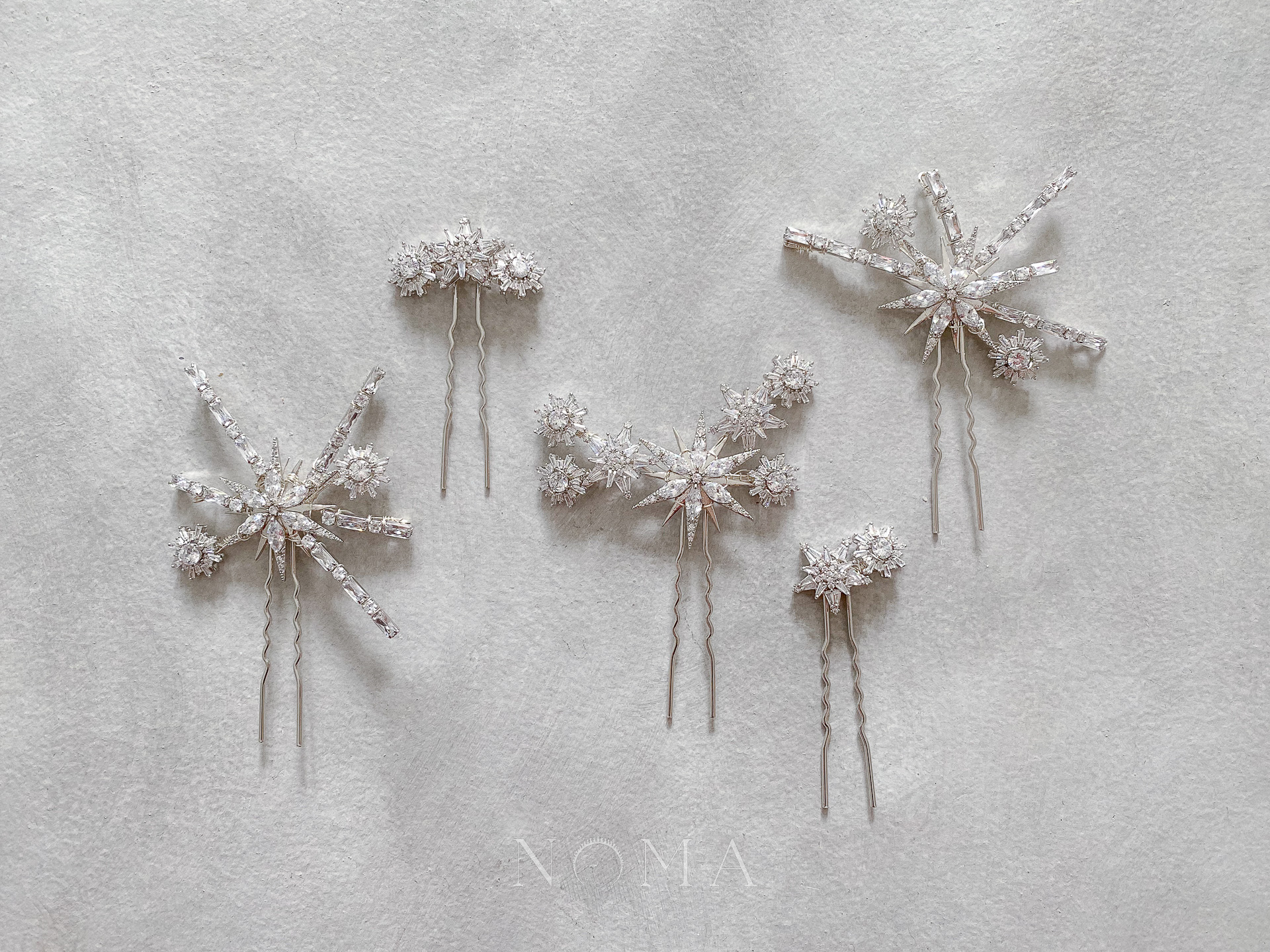 Meteor Shower Hairpin Set – White Gold (5 pcs)