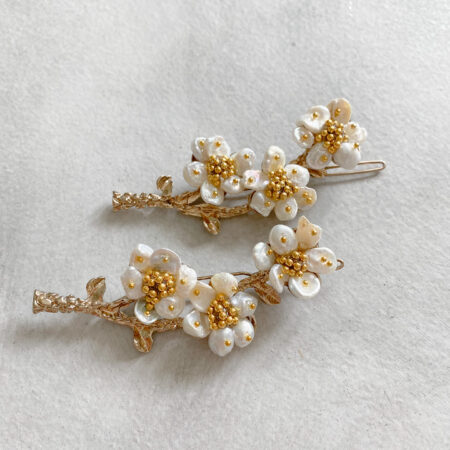 Rustic Pearl Flower Bronze Hairclip Set – Gold (2 pcs)
