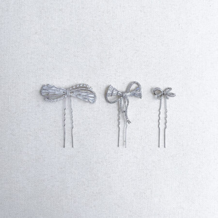 Ribbon Jewel Hairpin Set – White Gold (3 pcs)