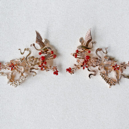 Dragon and Crane Heaven Hairvine Pair – Gold, Ruby (1 pair)
