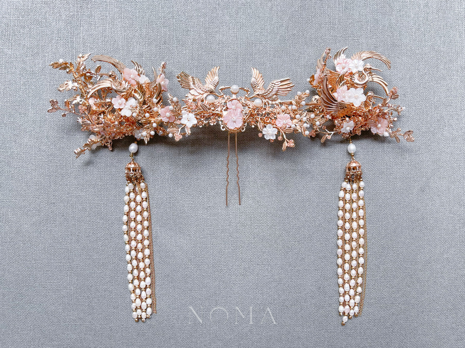Twin Crane Blossom Set – Gold, Pink (3 pcs)