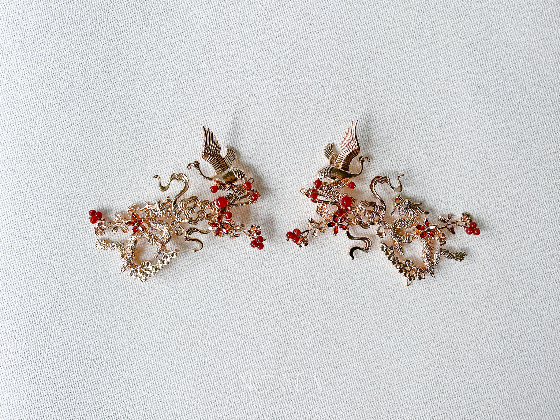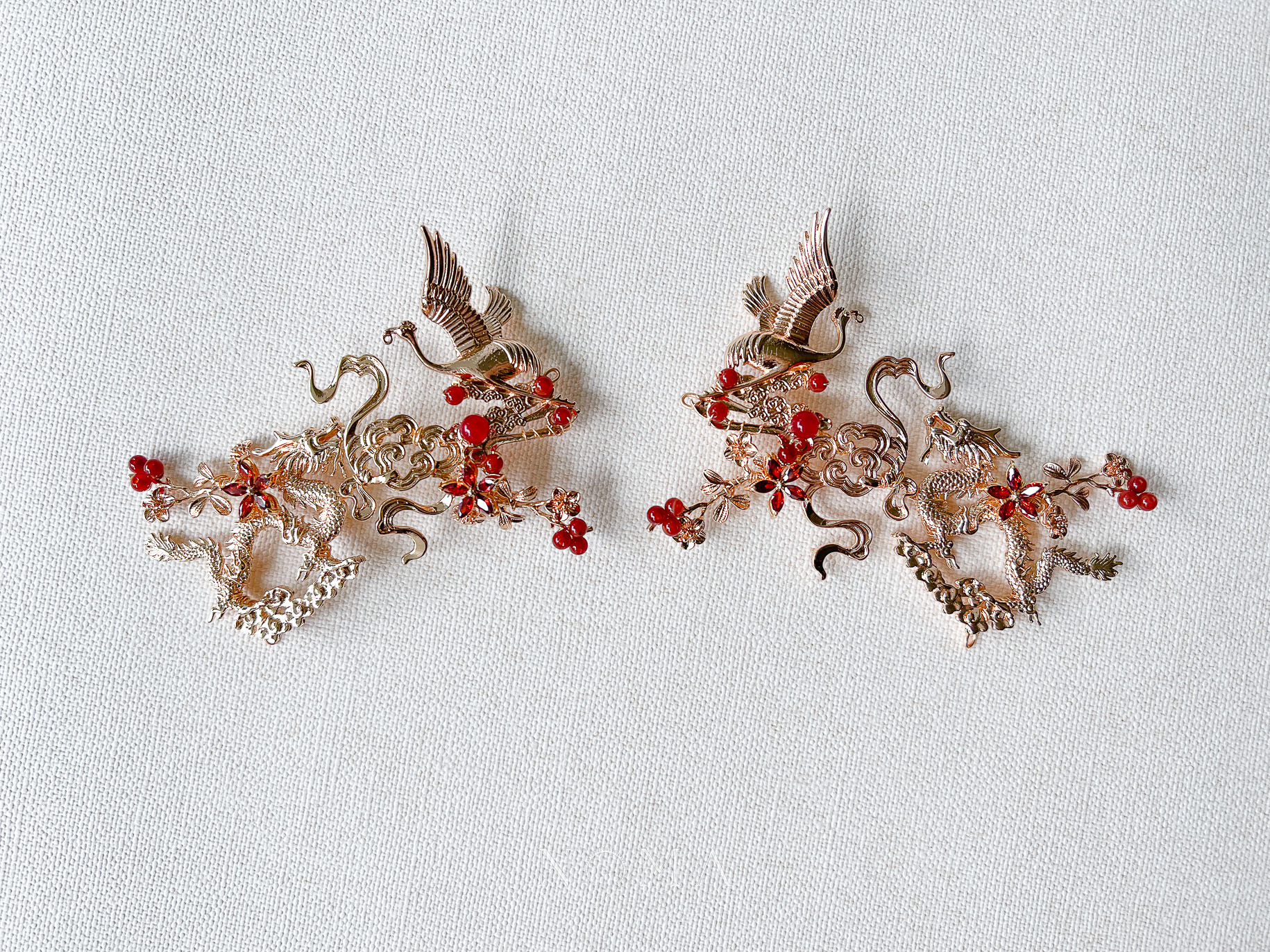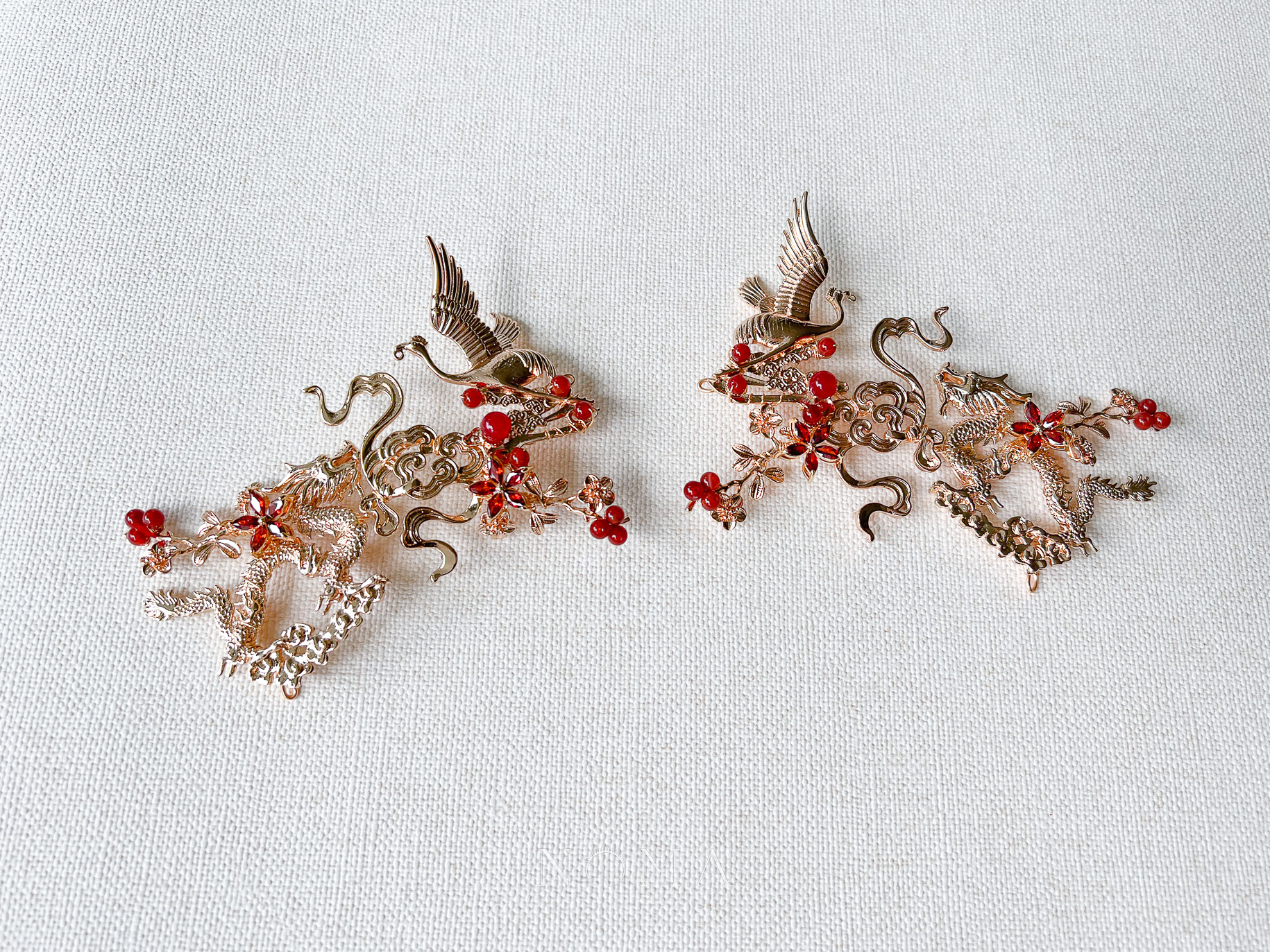 Dragon and Crane Heaven Hairvine Pair – Gold, Ruby (1 pair)