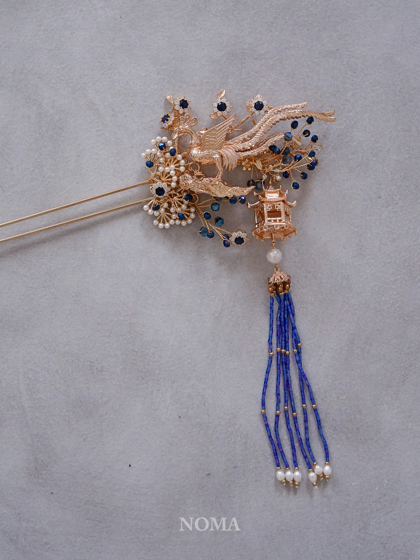 3D Phoenix Pagoda Hairpin – Gold, Sapphire
