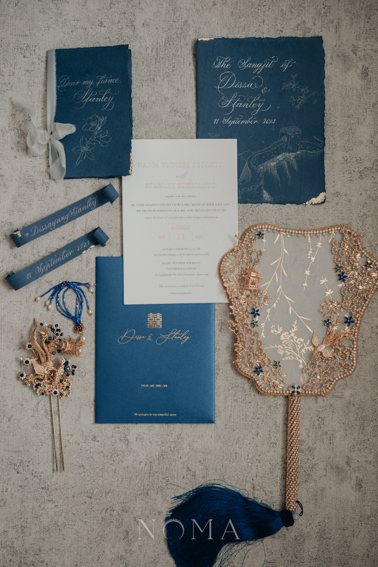 Flying Crane Bouquet Set – Gold, Sapphire (3 pcs)