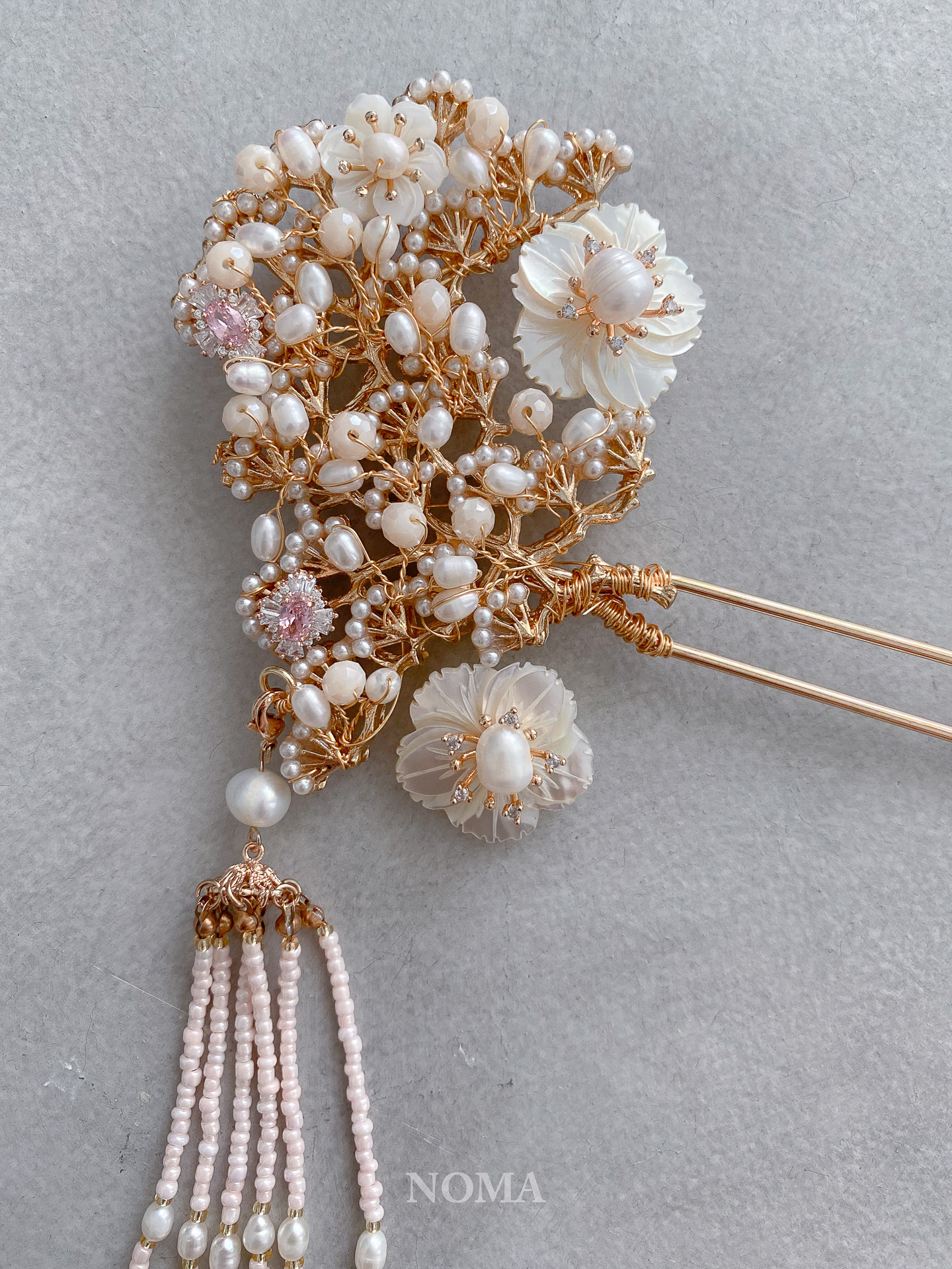 Gold Oriental Tree Hairpin – Gold, Pink Diamond