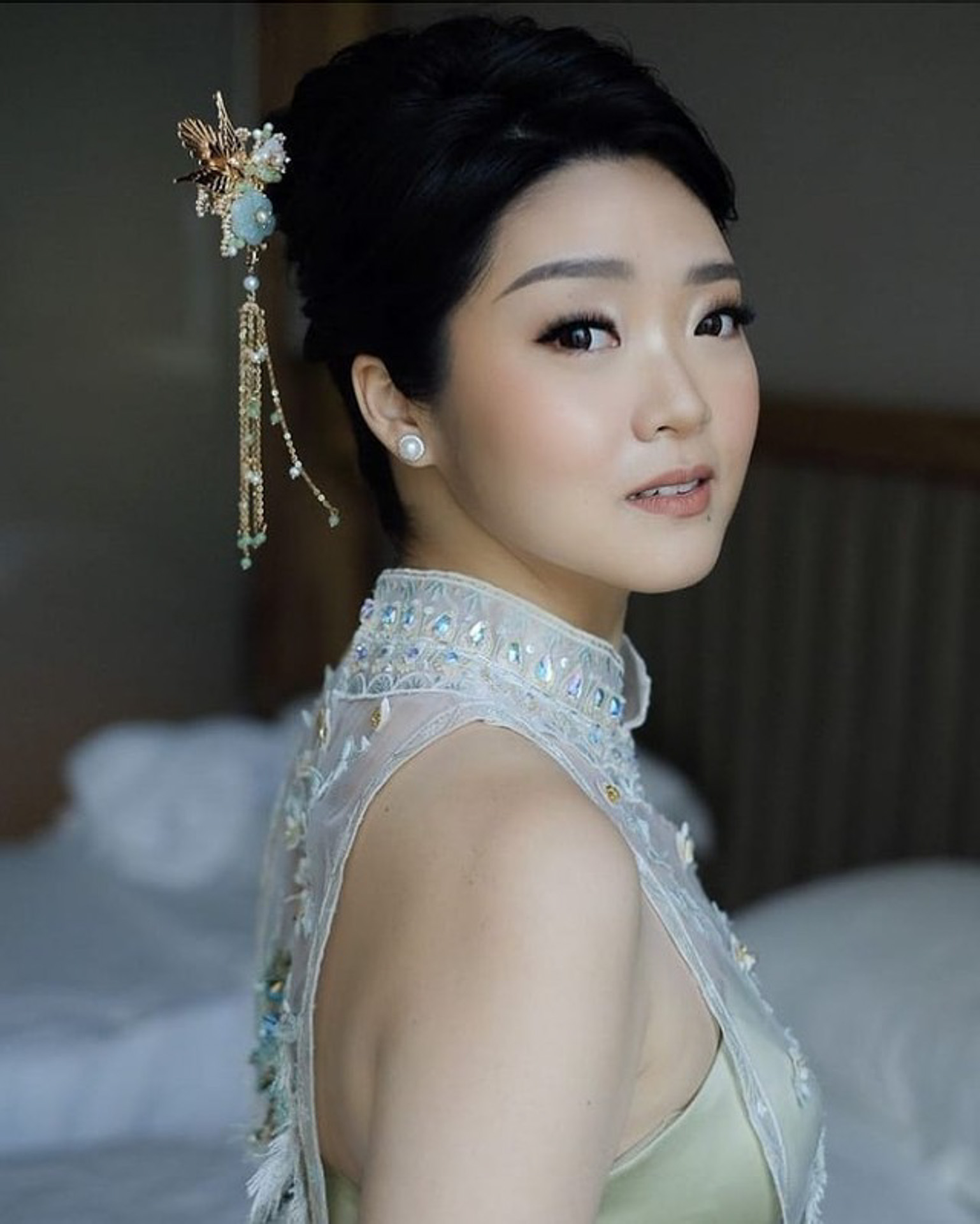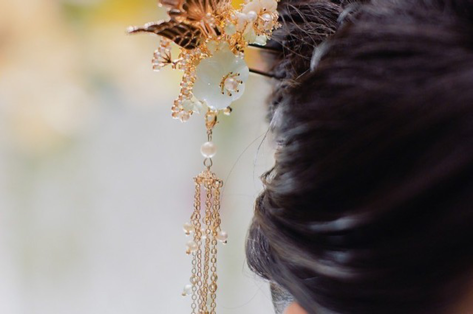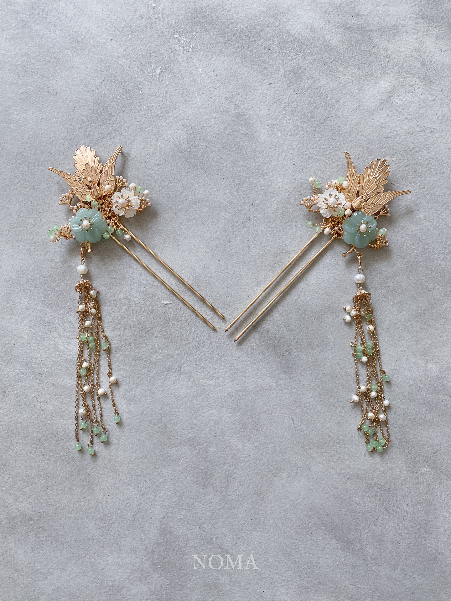Phoenix Jade Flowers Hairpin – Gold (Right)