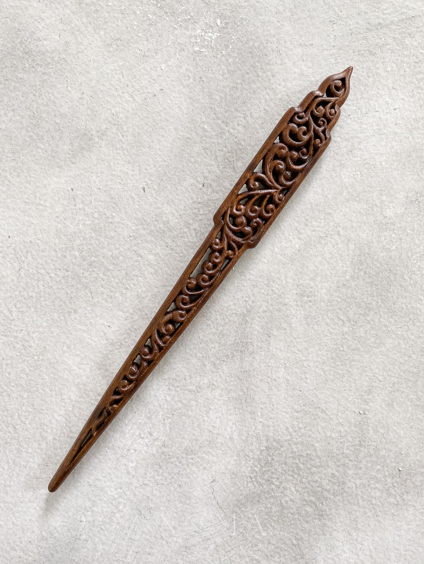 Intricate Carved Wooden Hairpin – Dark Brown