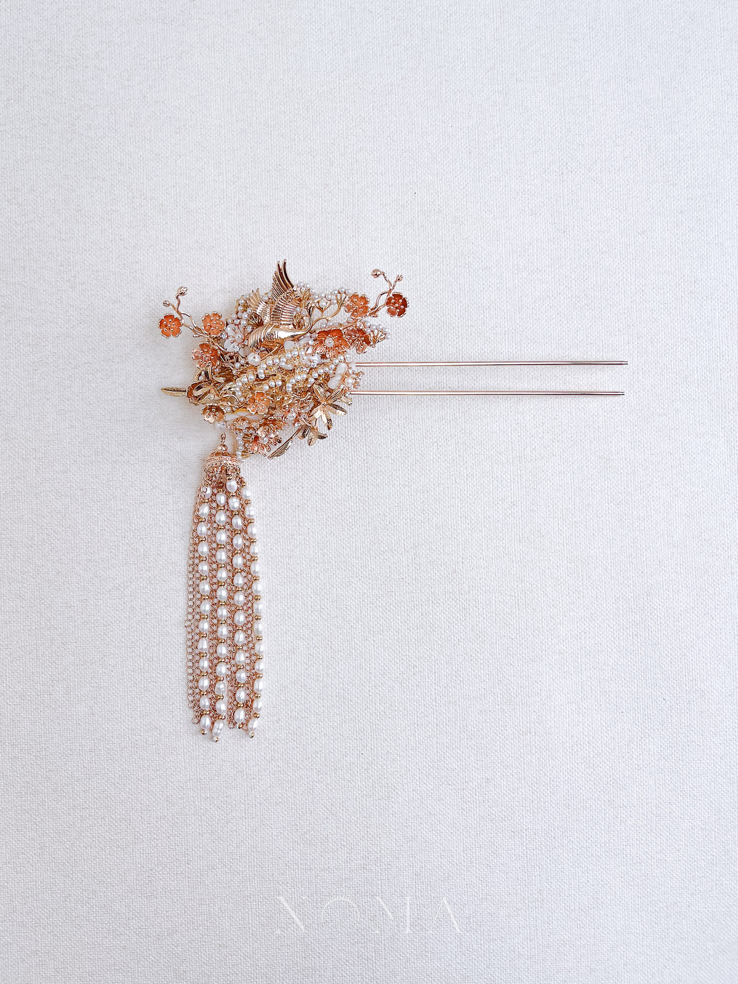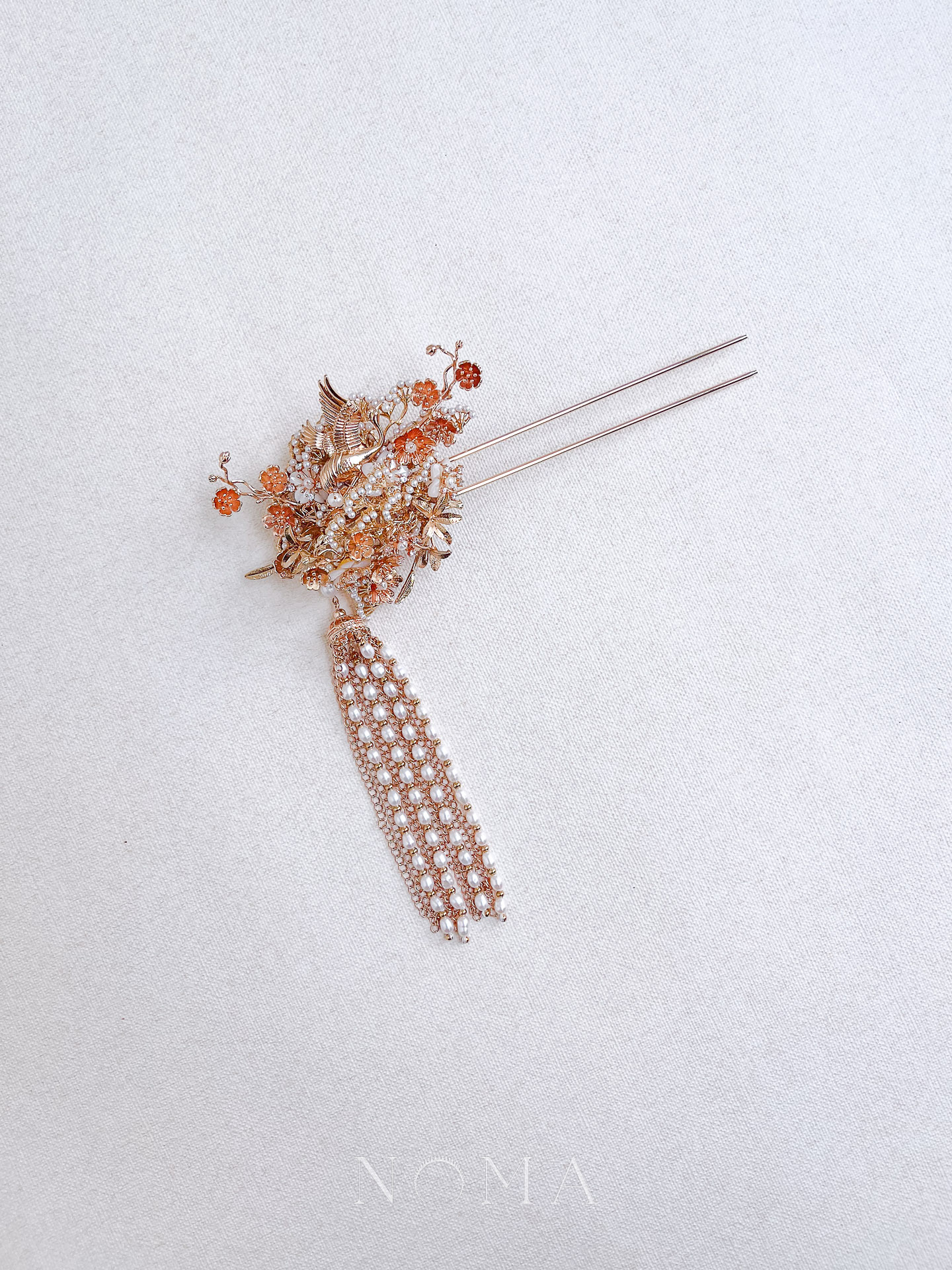 Flying Crane Pearl Blossom Hairpin – Gold, White (Right)