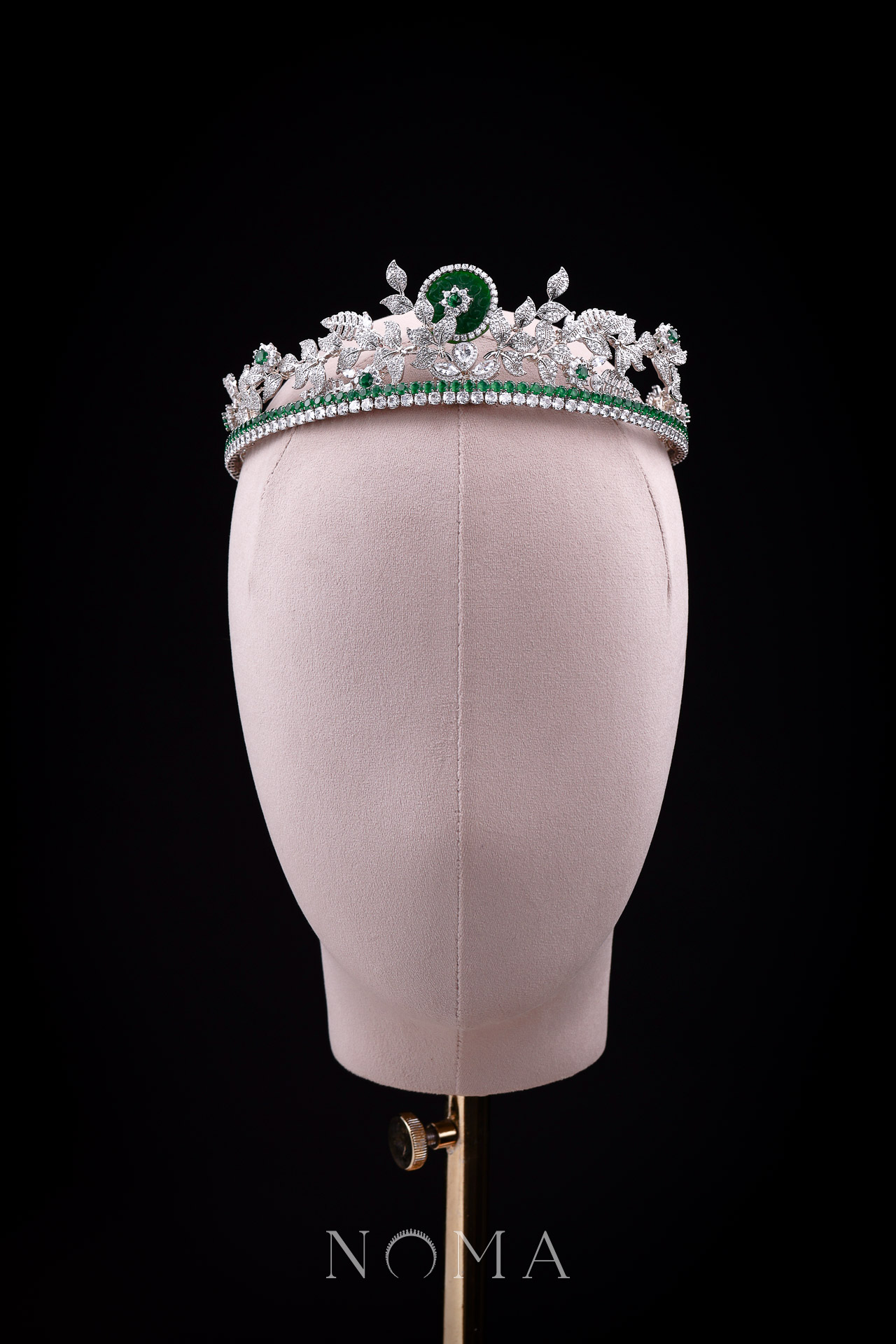 Jade Emerald Diamond Garden Crown – Rhodium White Gold, Emerald