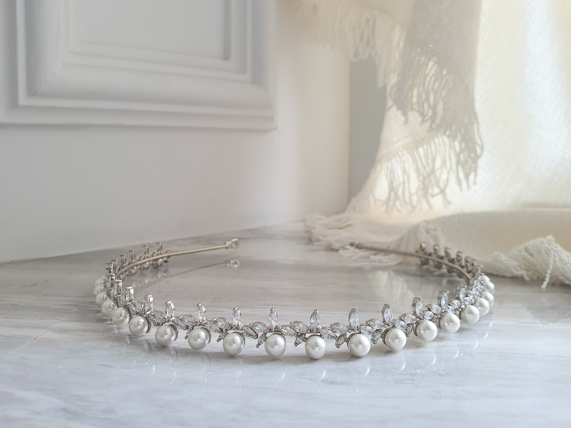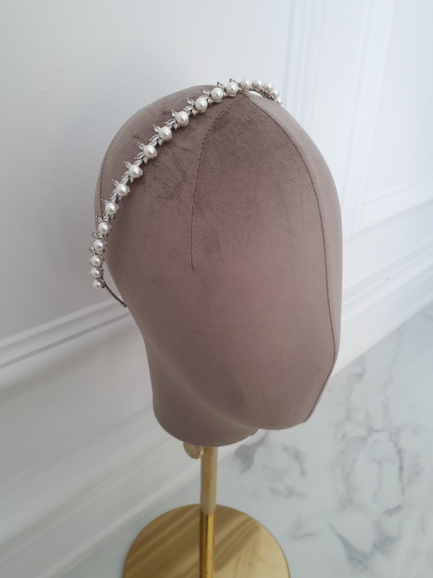 Pearl Elegance Headband – Rhodium White Gold, White Pearl
