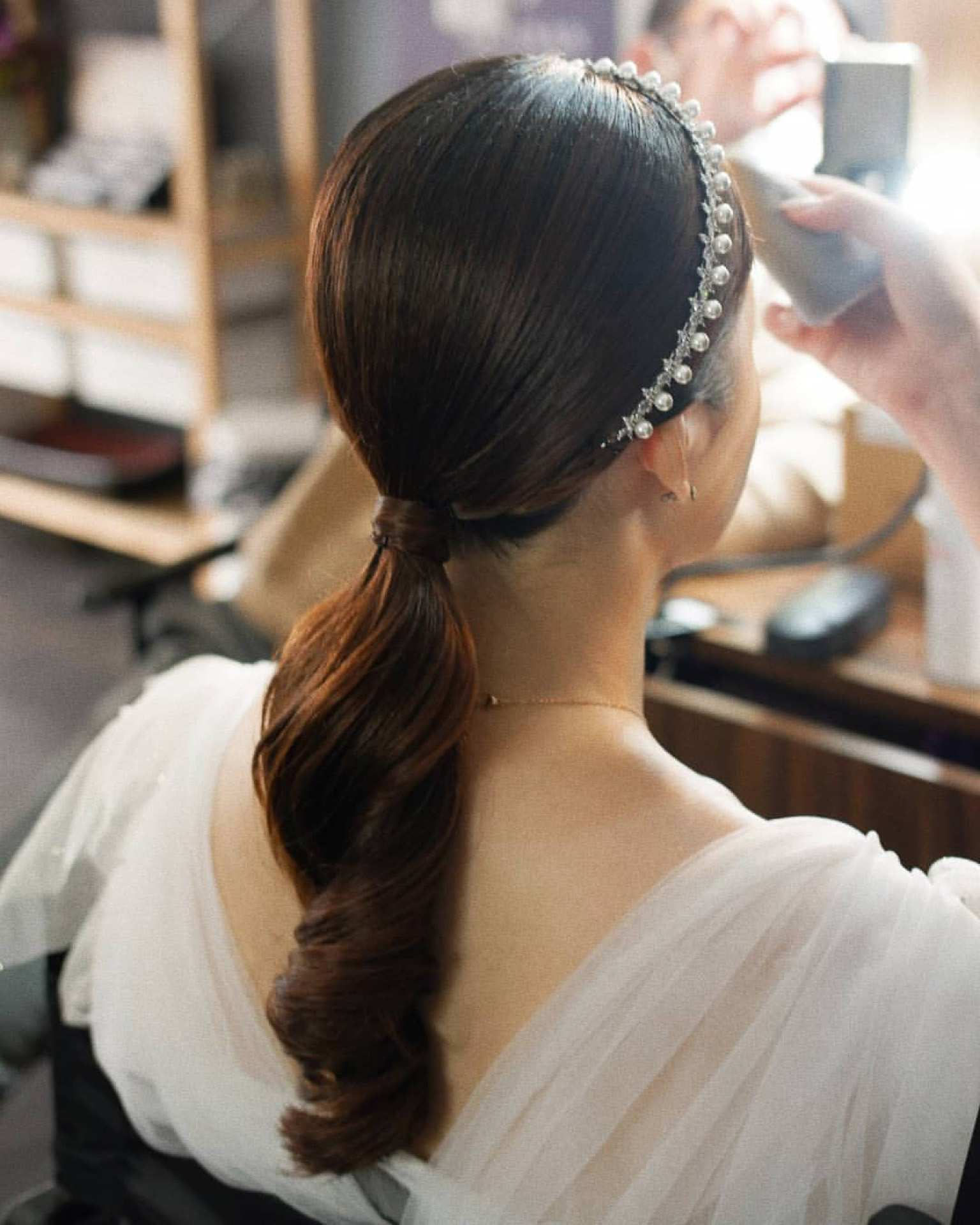 An alternative to wedding crowns for those who want a simple and sleek look without sacrificing luxury.