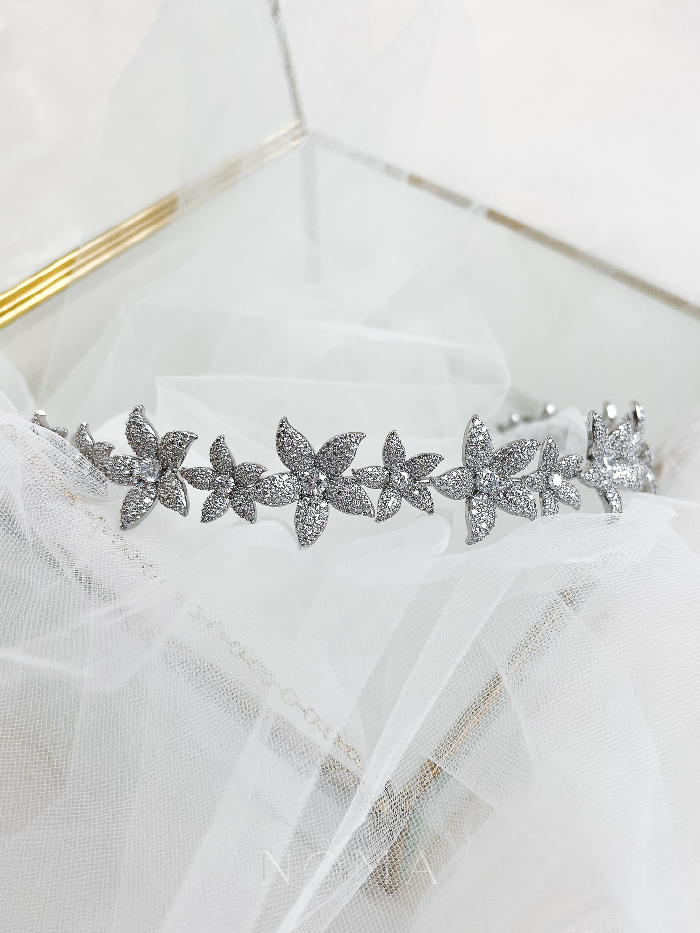 An alternative to wedding crowns for those who want a simple and sleek look without sacrificing luxury.