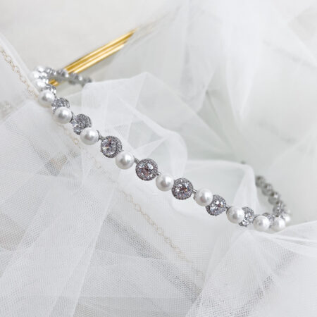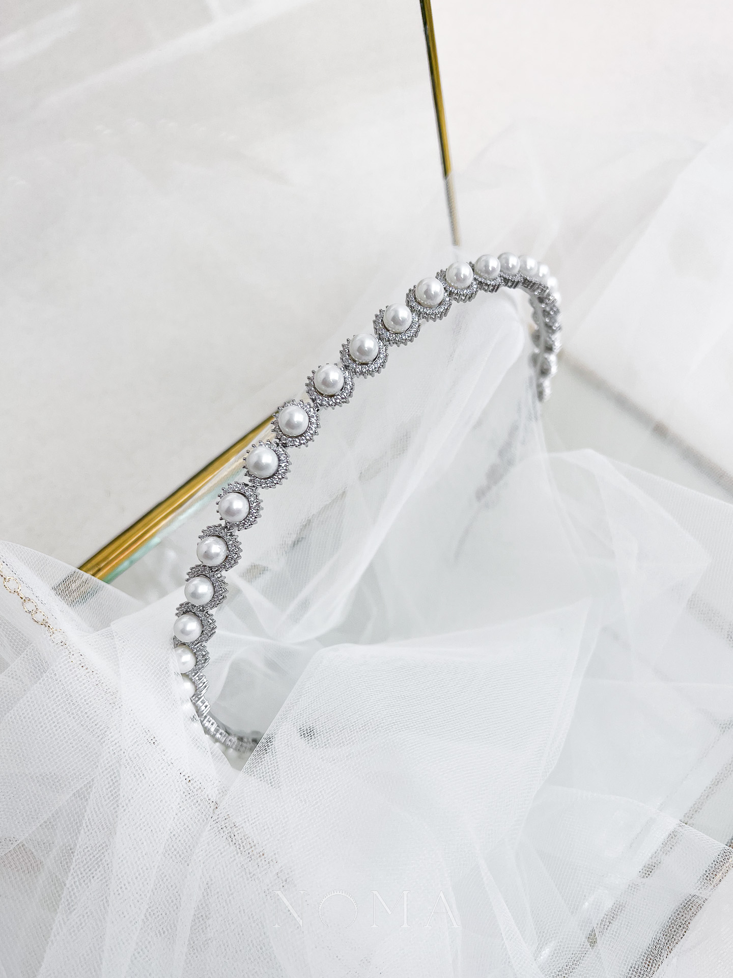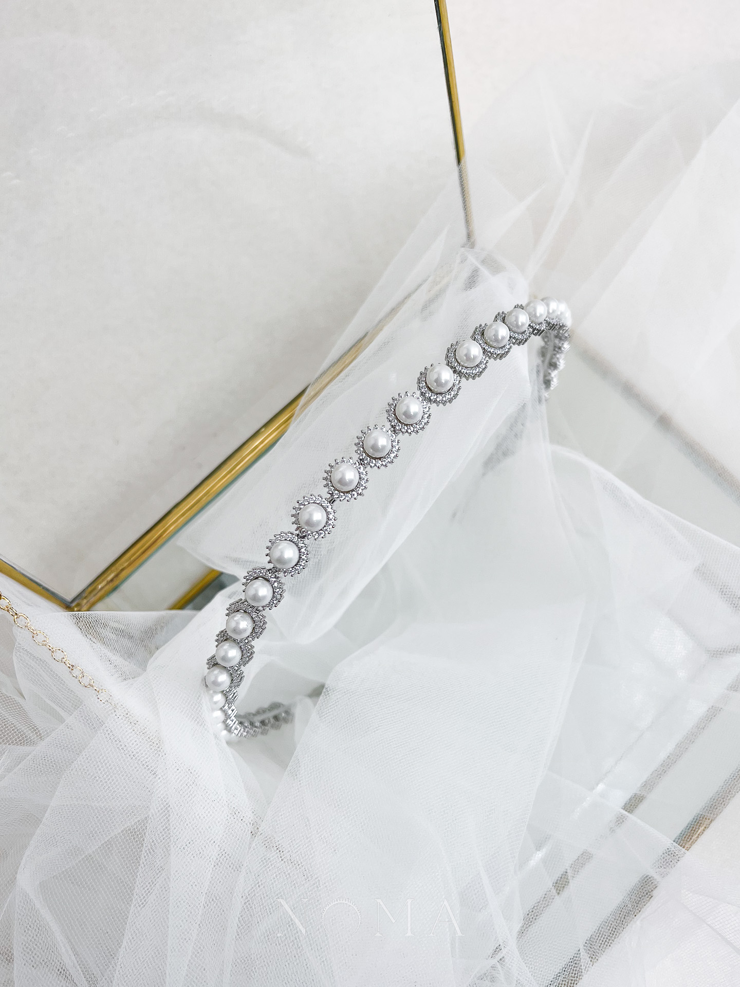 Pearl Halo Large Headband – Rhodium White Gold, White Pearl