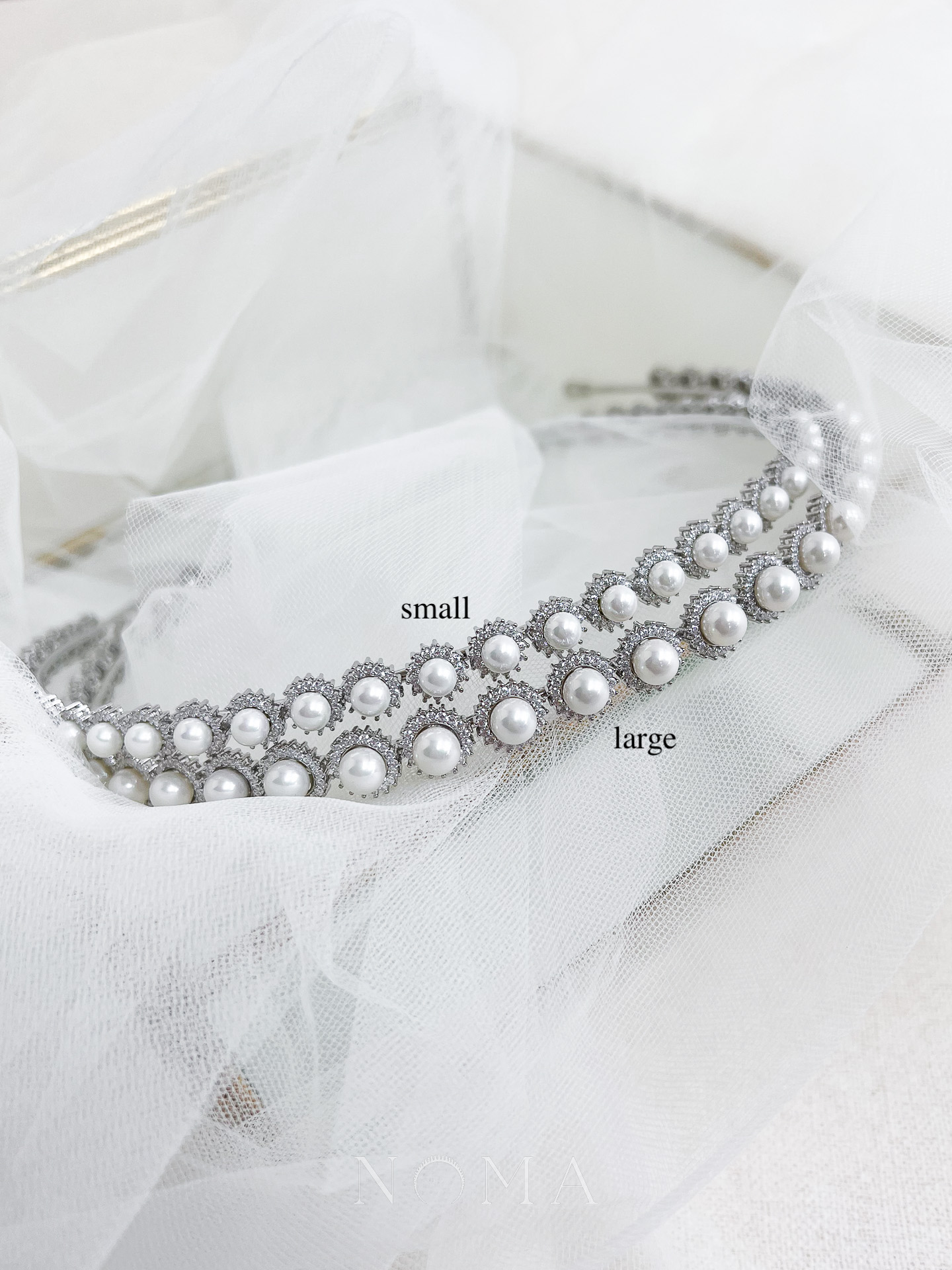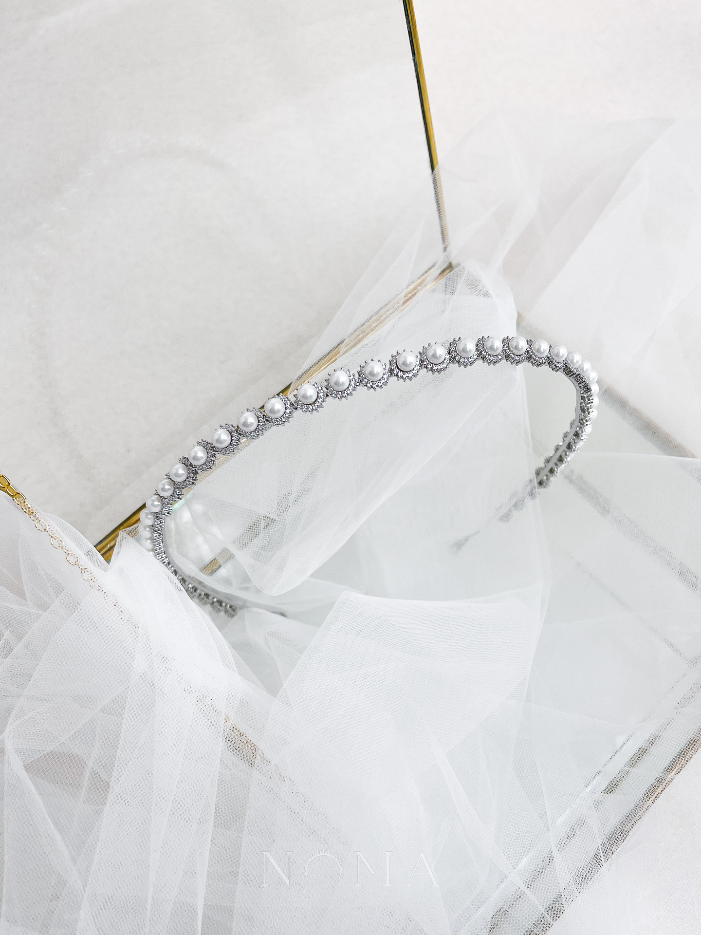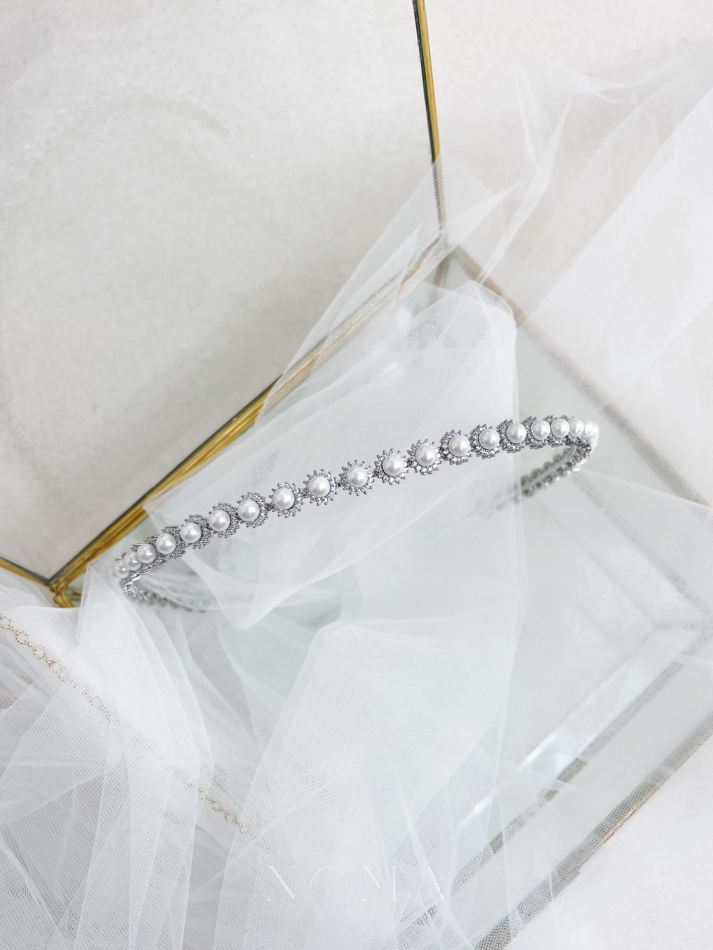 Pearl Halo Small Headband – Rhodium White Gold, White Pearl